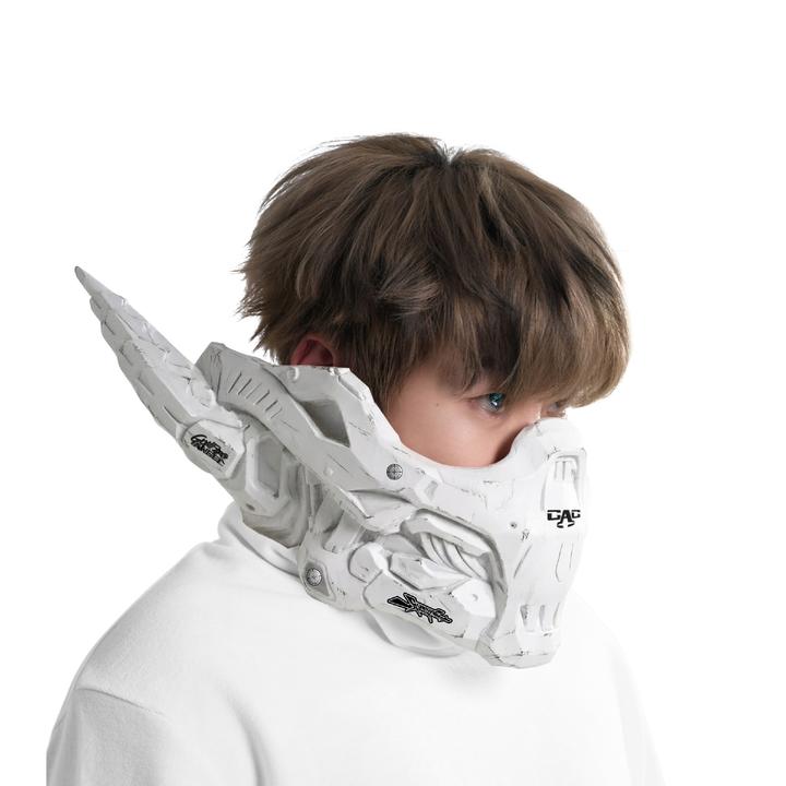 看着戴面具的人群等待BRT