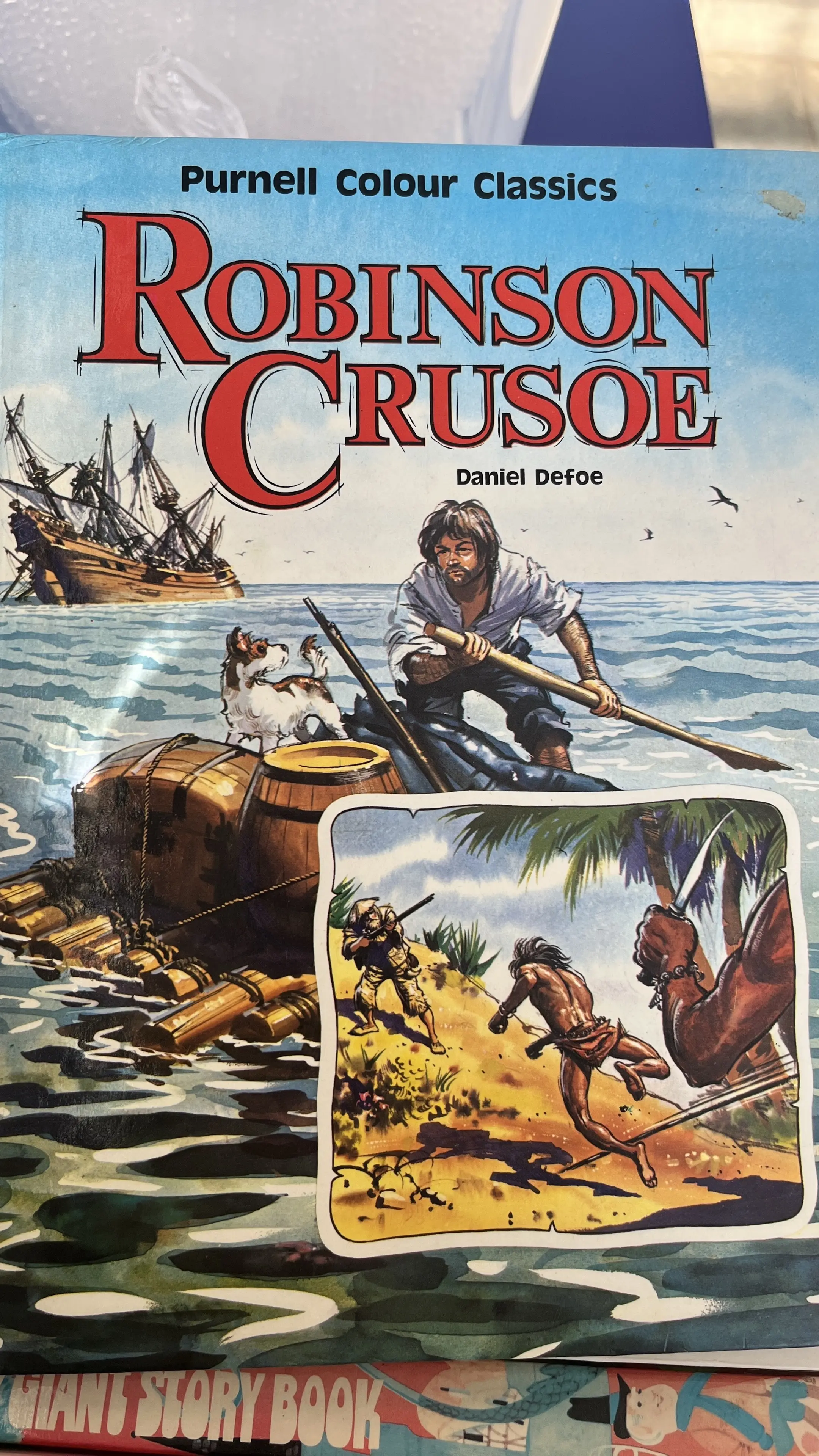 那些漂亮书。《鲁滨逊漂流记》的绘本,属于“Purnell Colour Classics”系列!1975年印刷于意大利! 作品与作者: ◦ 书名:《ROBINSON CRUSOE》(《鲁滨逊漂流记》)1975年印刷于意大利! 作者:Daniel Defoe(丹尼尔·笛福),该作品是18世纪英国现实主义小说的代表作之一。插画由知名的肖像画家与海洋画家约翰·沃斯利制作! “Purnell Colour Classics”是20世纪中后期英国Purnell出版社推出的经典文学改编绘本系列,以彩色插画、大开本形式呈现经典作品,适合儿童阅读,同时保留原著核心情节。#复古书 #英文原版书