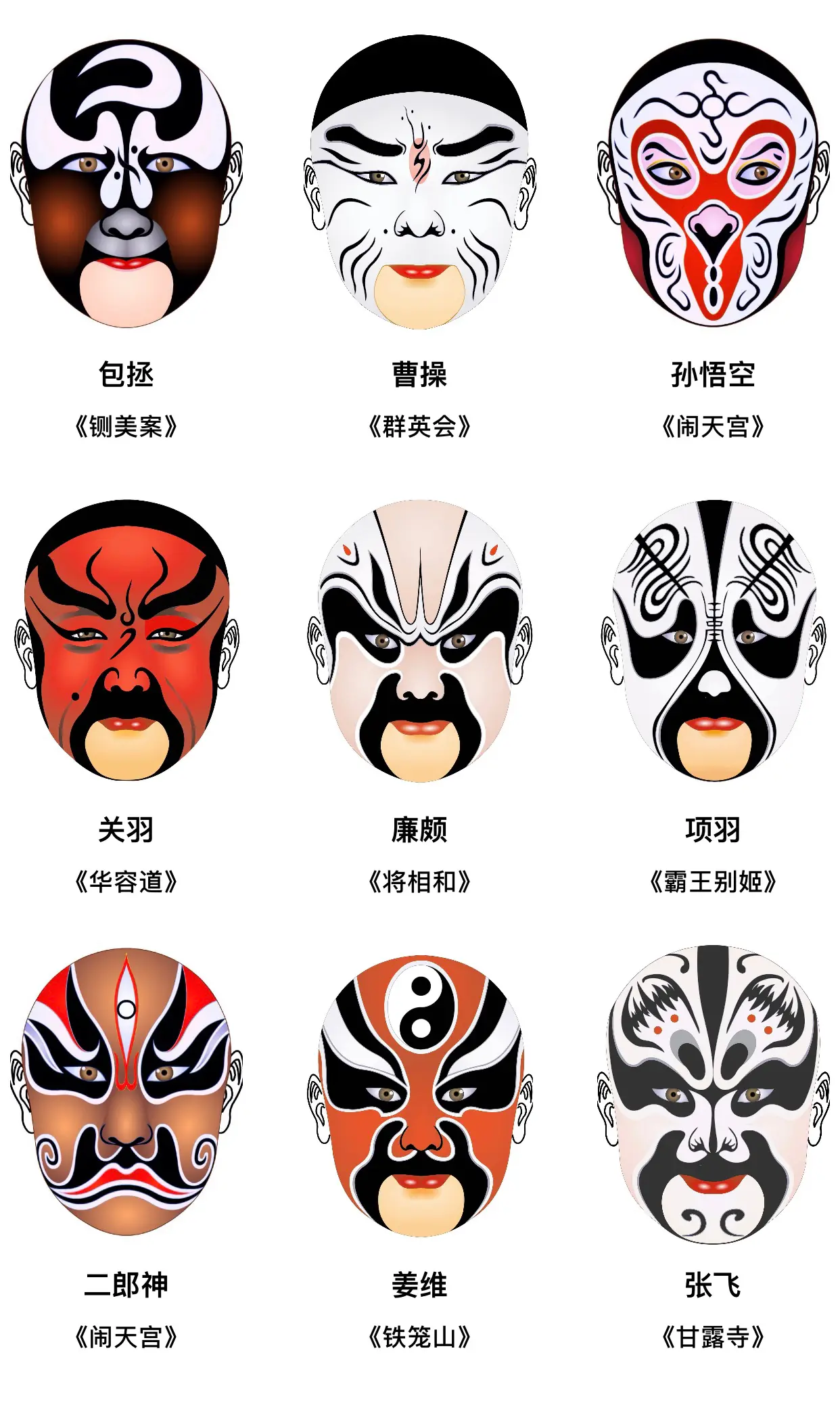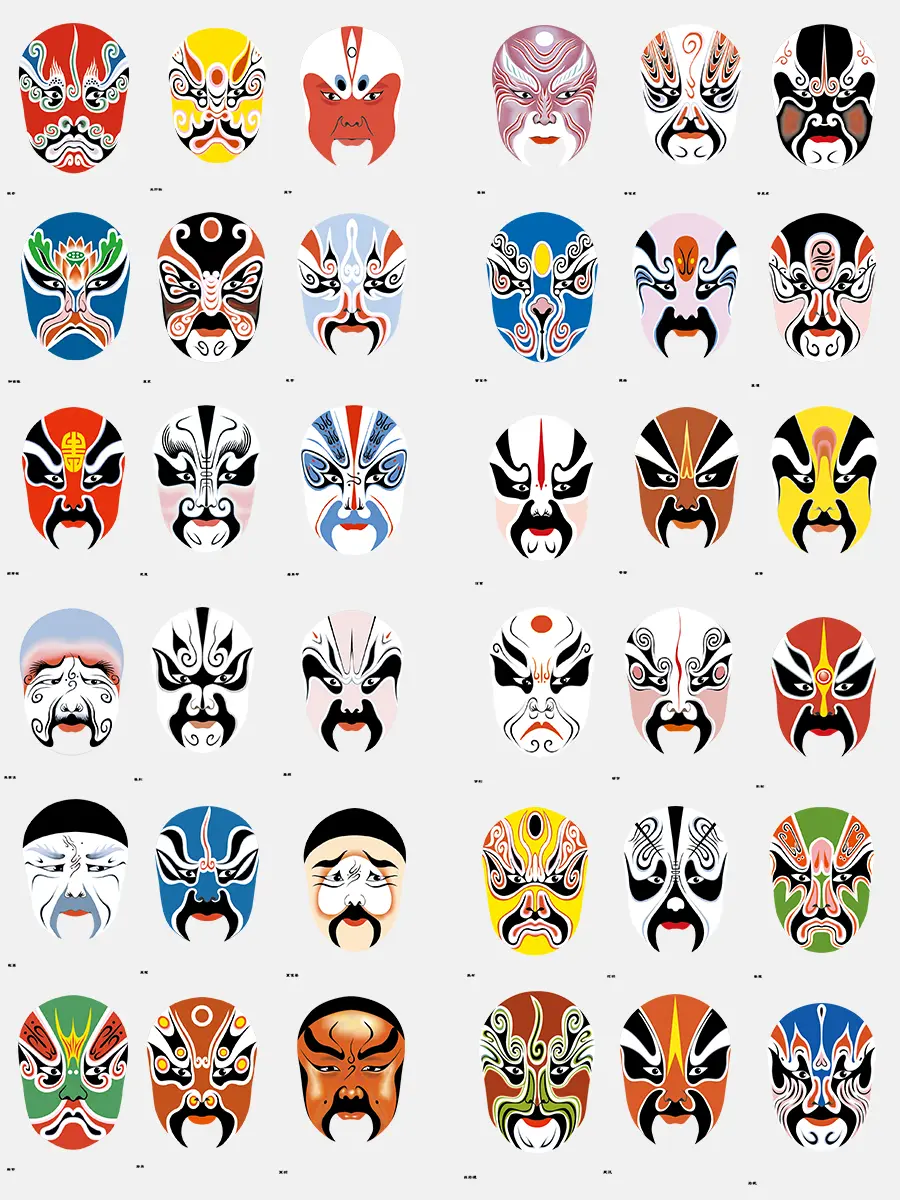 《京剧戏曲脸谱大全》【上】;是一种具有中国文化特色的特殊化妆方法。由于每个历史人物或某一种类型的人物都有一种大概的谱式,就像唱歌、奏乐都要按照乐谱一样,所以称为“脸谱”。关于脸谱的来源,一般的说法是来自假面具。京剧脸谱艺术是广大戏曲爱好者的非常喜爱的一门艺术,国内外都很流行,已经被大家公认为是中国传统文化的标识之一。脸谱的主要特点有三点:美与丑的矛盾统一,与角色的性格关系密切,其图案是程式化的。#国粹传承 #传统文化 #非物质文化遗产 #京剧 #弘扬戏曲文化